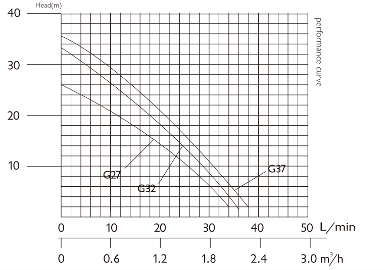 نمودار عملکرد و آبدهی پمپ آکوا استرانگ مدل G400A